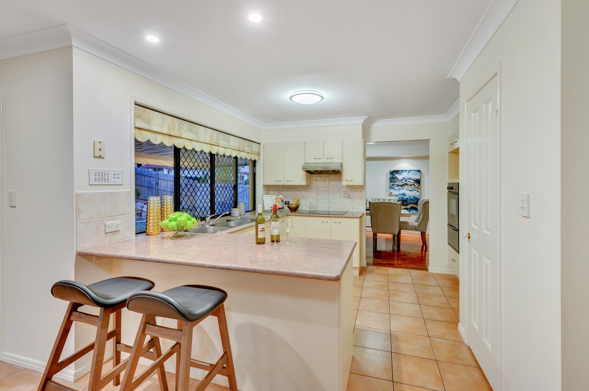 The amazing kitchen is a very stylish highlight of the home. Centrally located overlooking the open plan dining area as well as the landscaped garden, boasting quality appliances, breakfast bar and ample bench and storage space. The two living areas in the residence are ideal for the family, offering the versatility and separation between the grown ups and the little ones.