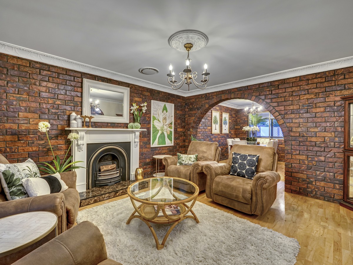 - Fully-fenced yard with a high brick wall for privacy and security which also includes automated gate access
