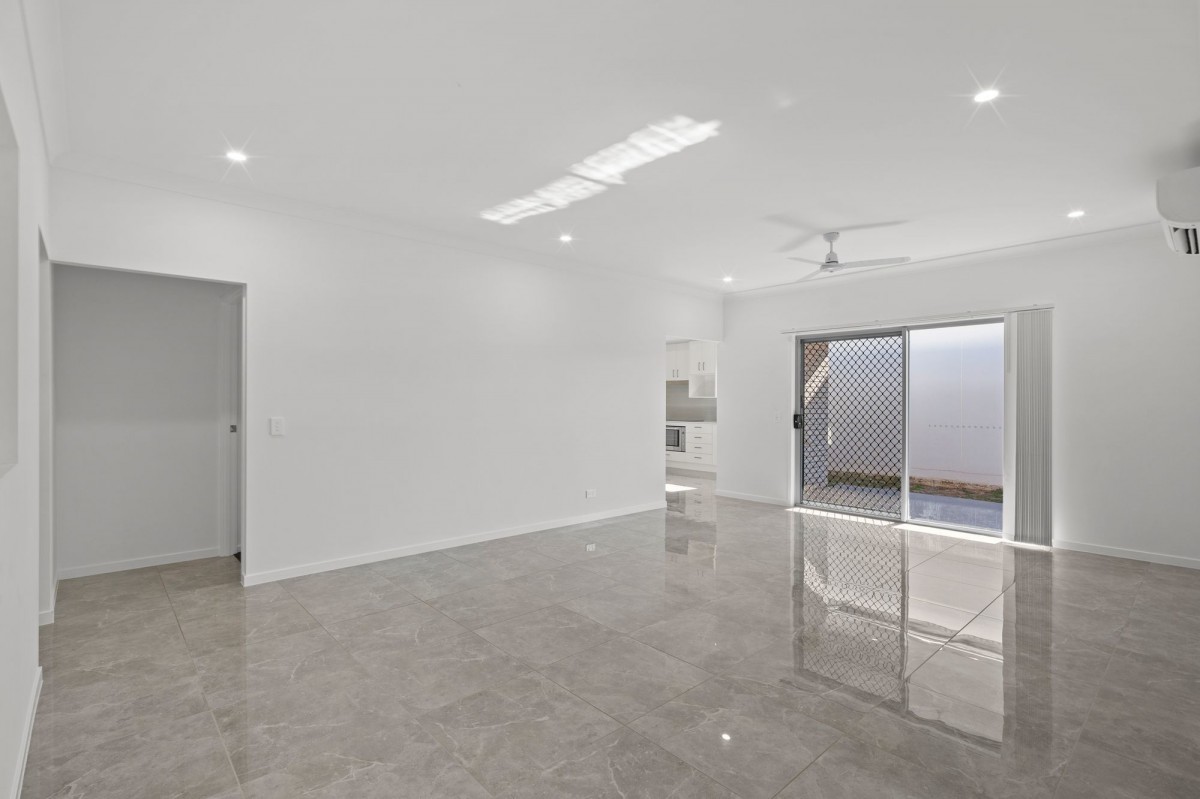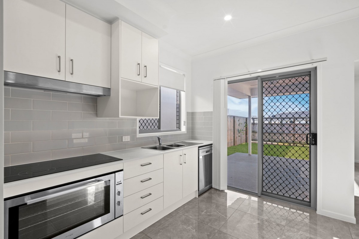 The modern kitchen takes centre stage - featuring sleek cabinetry, stainless-steel appliances, a walk-in pantry, and direct access to the covered alfresco patio, making entertaining effortless. The open-plan dining and living area flows beautifully to the outdoor space, where there's plenty of room for kids or pets to play safely.