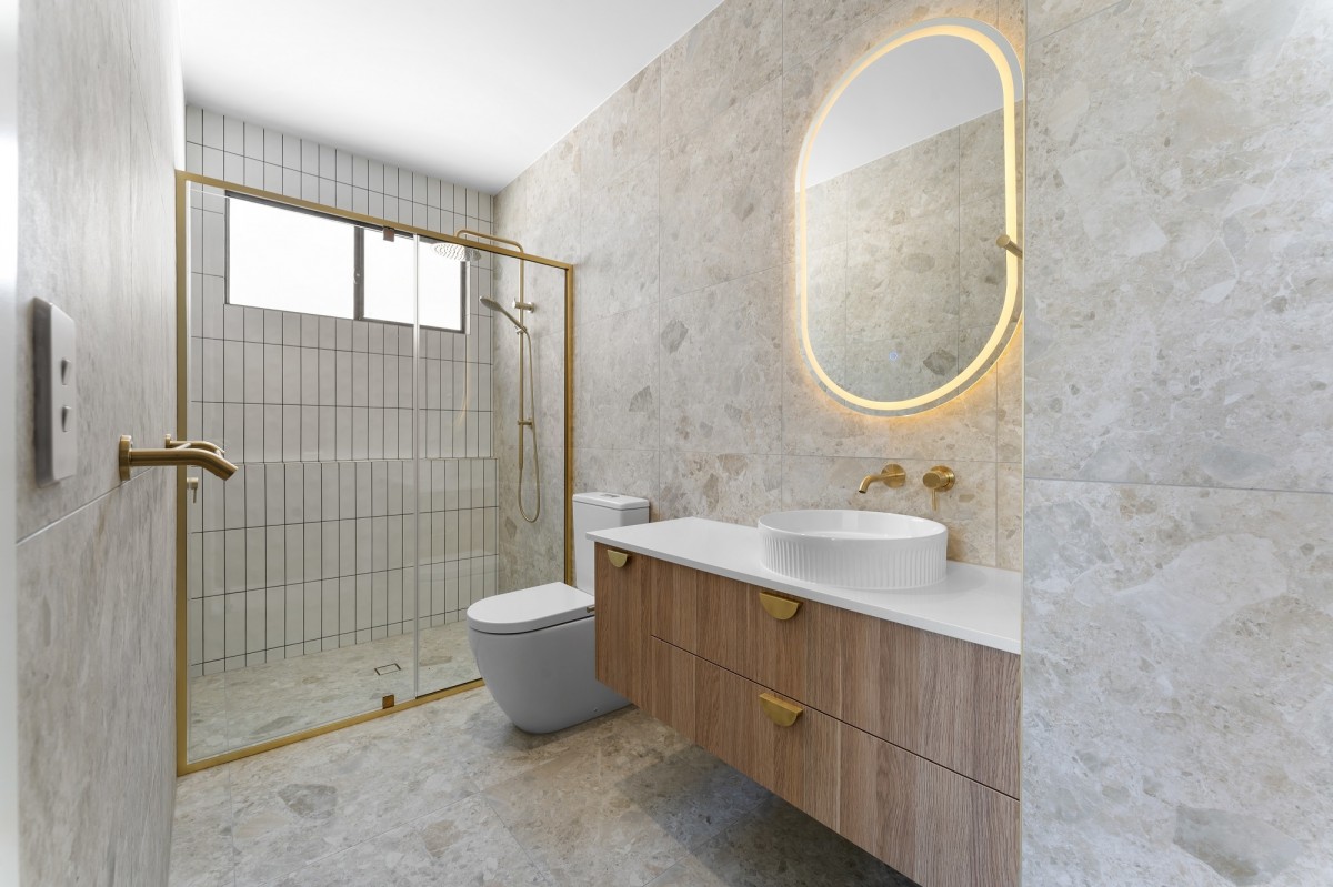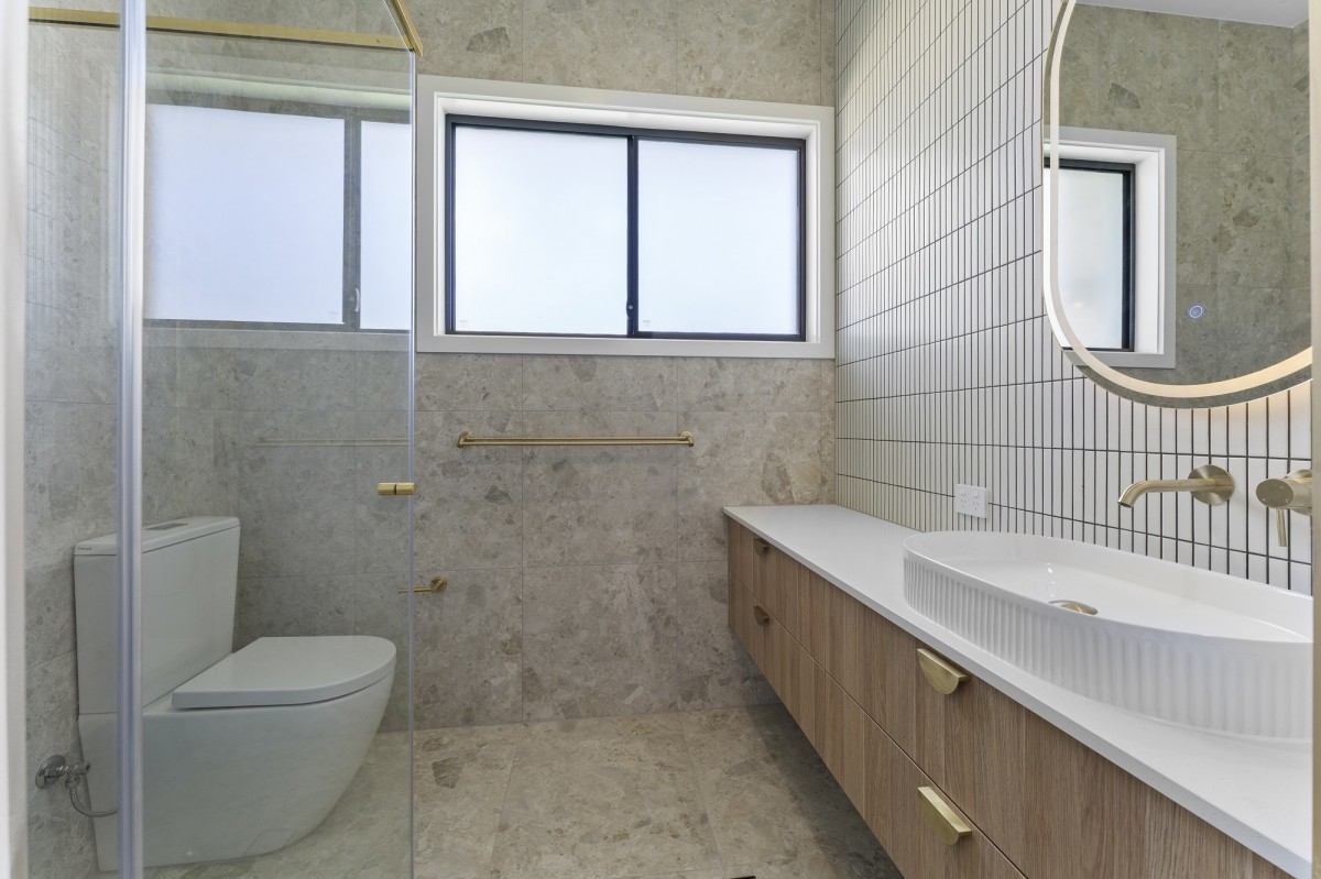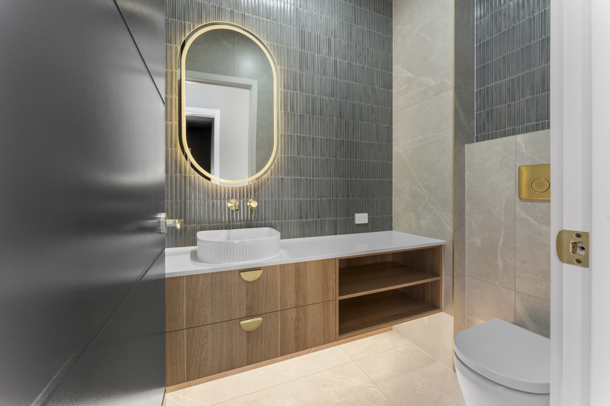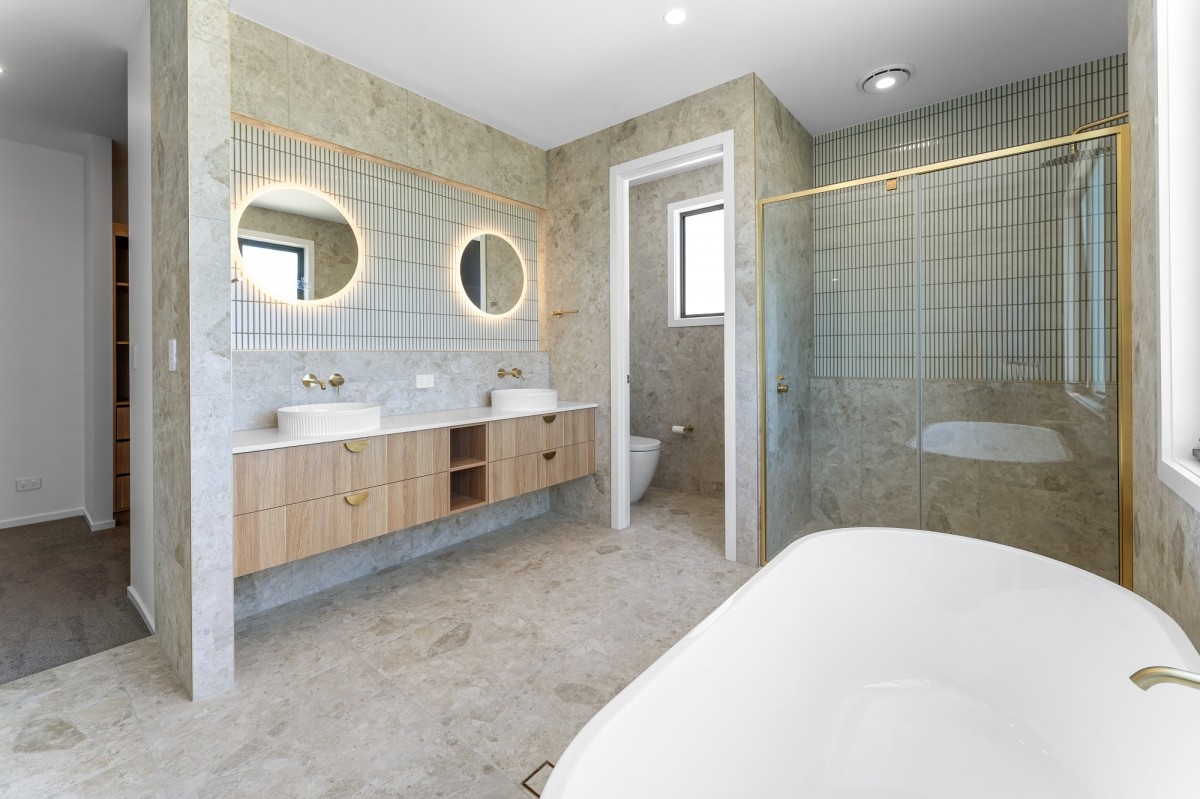 Upstairs, the sense of luxury continues with a spacious rumpus room, a full wet bar, and beautifully appointed family bedrooms. The master suite enjoys its own wing, offering an impressive walk-in robe, a hotel-inspired ensuite with dual vanities, a freestanding bath, designer tiles, brushed gold tapware and an oversized shower. Each additional bedroom includes its own walk-in robe, with every bathroom finished in the same uncompromising level of quality and detail.