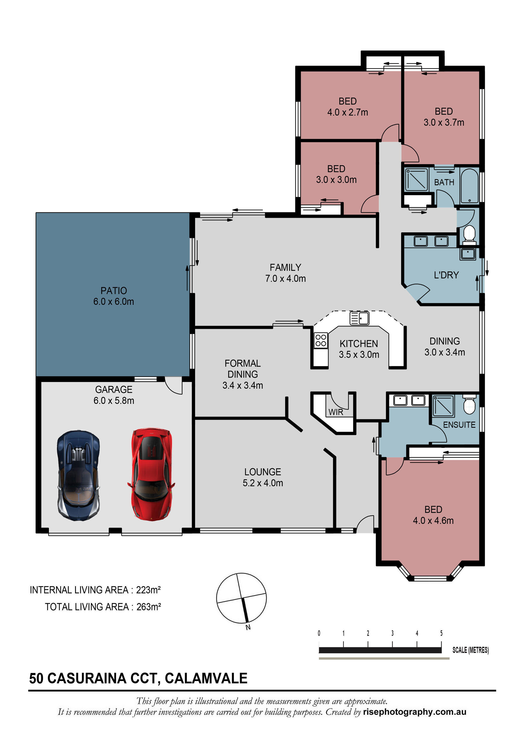 There are also 3 separate lounge, family areas located throughout the house.The tiled kitchen area flows freely to the dining room and then onto the outdoor coved patio, perfect for entertaining family and friends on weekends and holiday's.