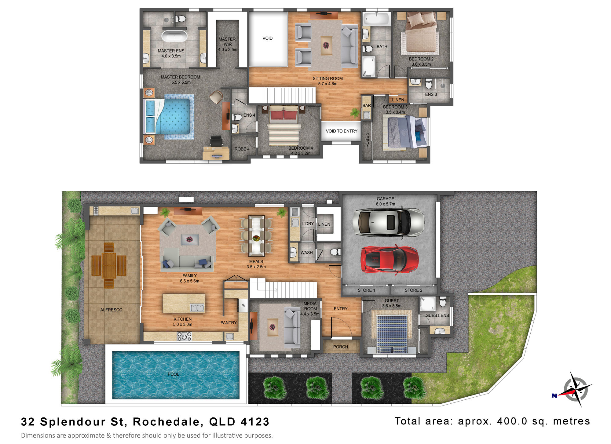 • Five spacious bedrooms - 4 queen sized rooms plus the expansive master suite