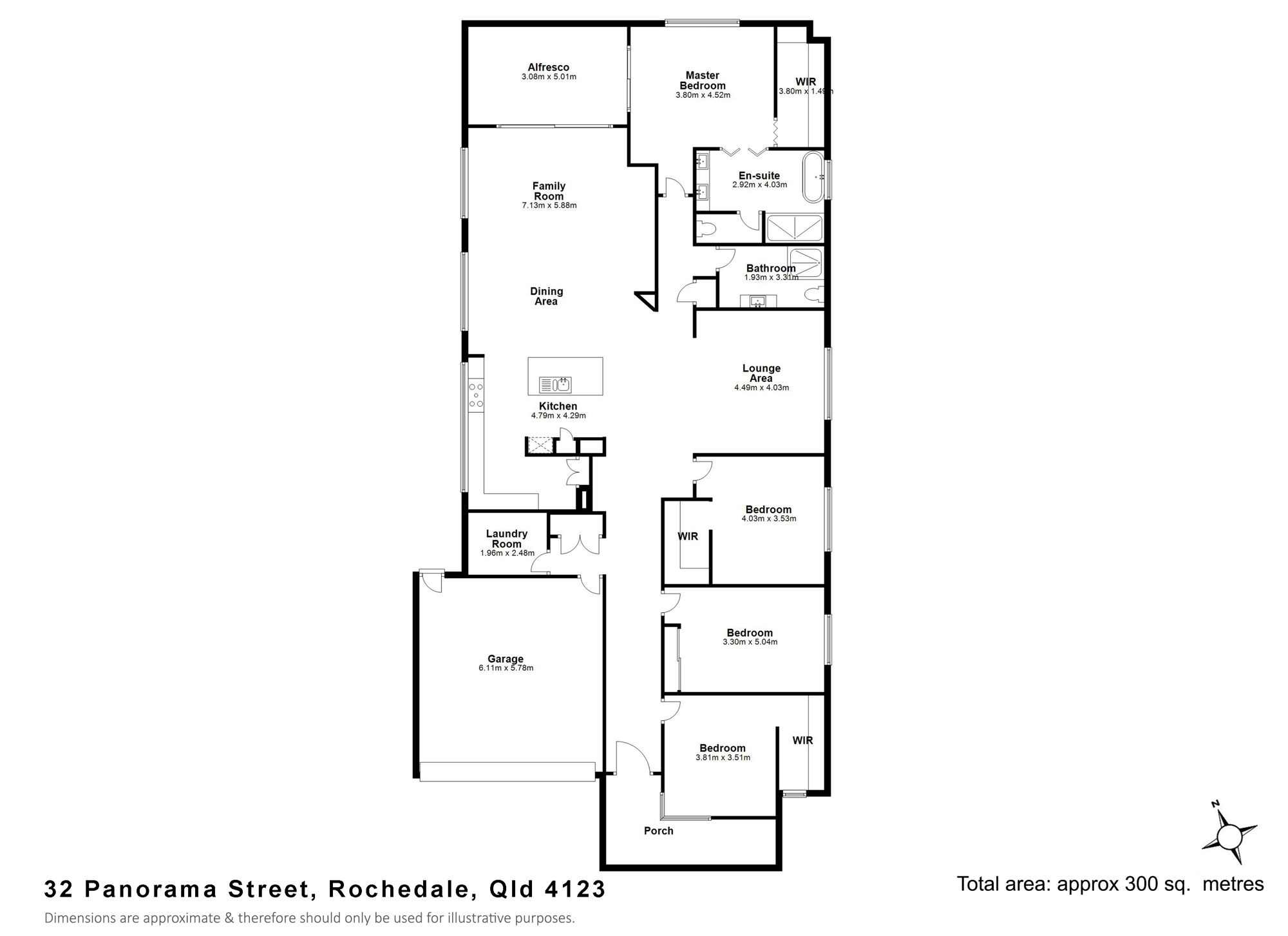 The master bedroom features a spacious walk-in wardrobe and luxurious ensuite with dual vanities, while the other three sizeable bedrooms all have built-in wardrobes.