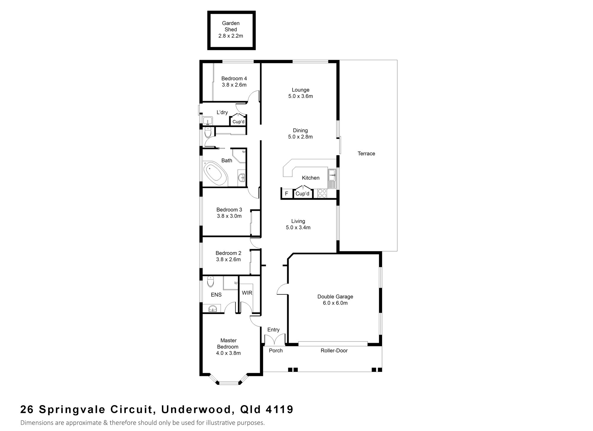 The four bedrooms are all generously sized, three of them with built in wardrobes. The air-conditioned master bedroom boasts front garden views from Bayview window, an en-suite and walk in robe.