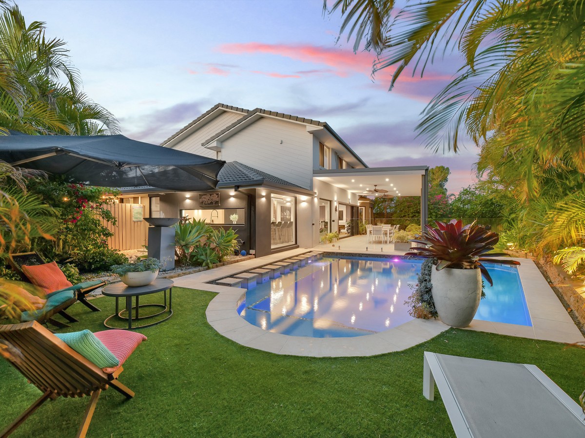 The backyard is designed for entertaining and leisure - a tiled alfresco, lush lawns, and ambient garden lighting surround the spectacular salt-water pool. Side access allows room for a trailer or Jet Ski, while the wide, long driveway accommodates up to 4 cars.