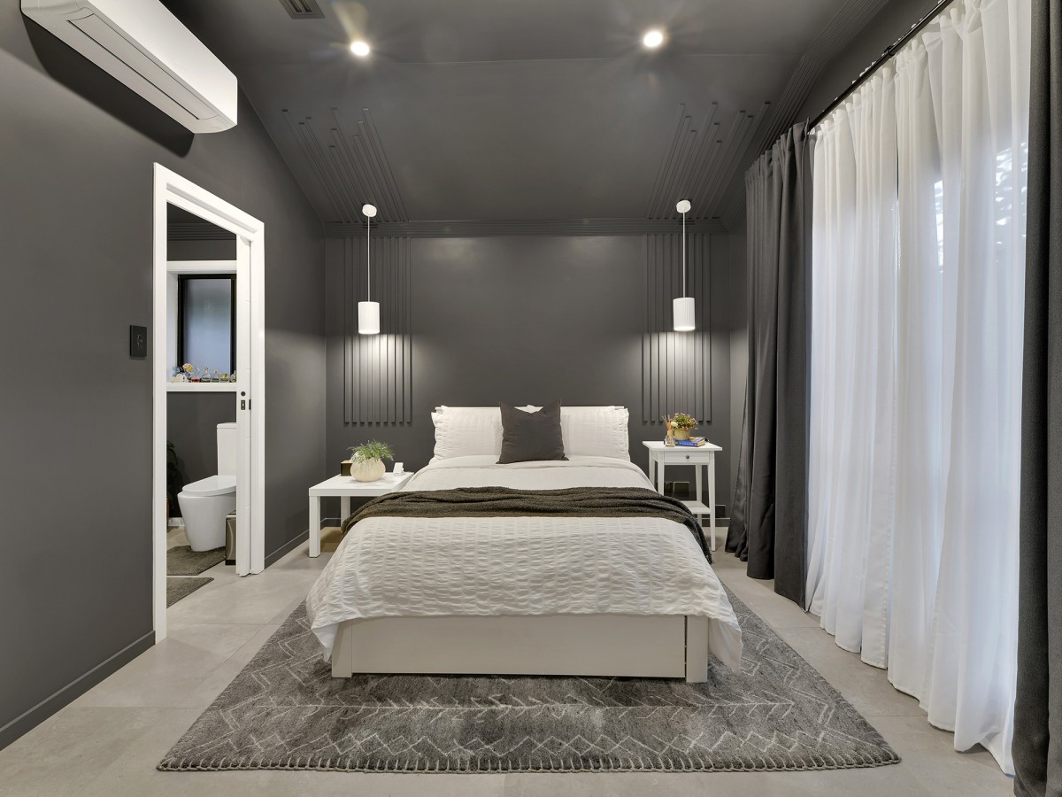 -2 × 14 kW Fujitsu ducted air-conditioning systems (upstairs & downstairs), 1 × Mitsubishi split system in downstairs guest room