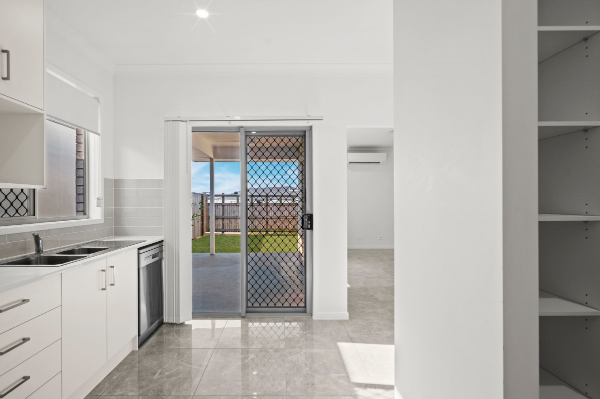 The modern kitchen takes centre stage - featuring sleek cabinetry, stainless-steel appliances, a walk-in pantry, and direct access to the covered alfresco patio, making entertaining effortless. The open-plan dining and living area flows beautifully to the outdoor space, where there's plenty of room for kids or pets to play safely.