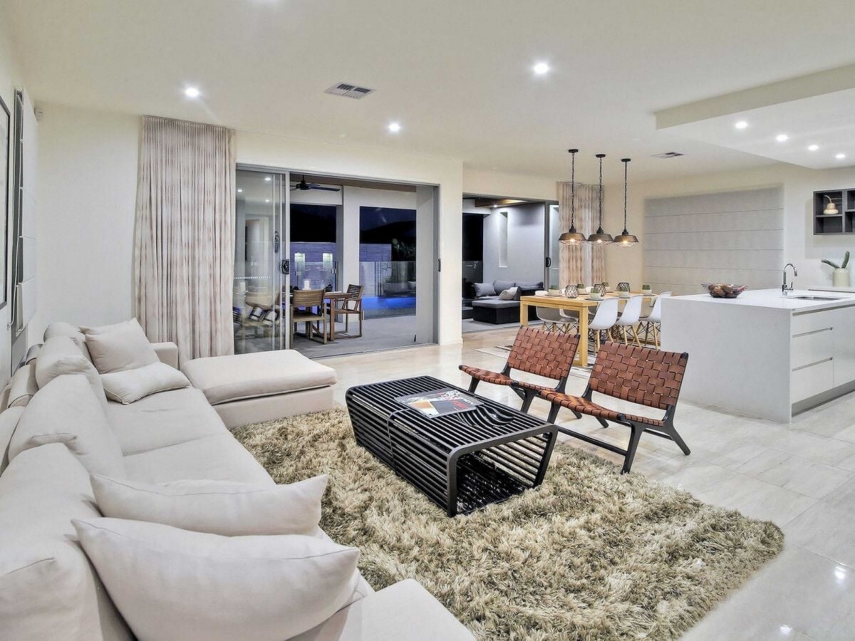 The upmarket kitchen is the heart of the home, with ample storage, a large pantry, premium appliances, and stone benchtops, making it ideal for any cooking enthusiast. The open-plan layout seamlessly connects the living and dining areas to a spacious, fully-tiled outdoor entertaining space, perfect for hosting guests. Additional entertaining options include a media/TV room on the lower level, while the second family living room upstairs offers a peaceful retreat for relaxation.