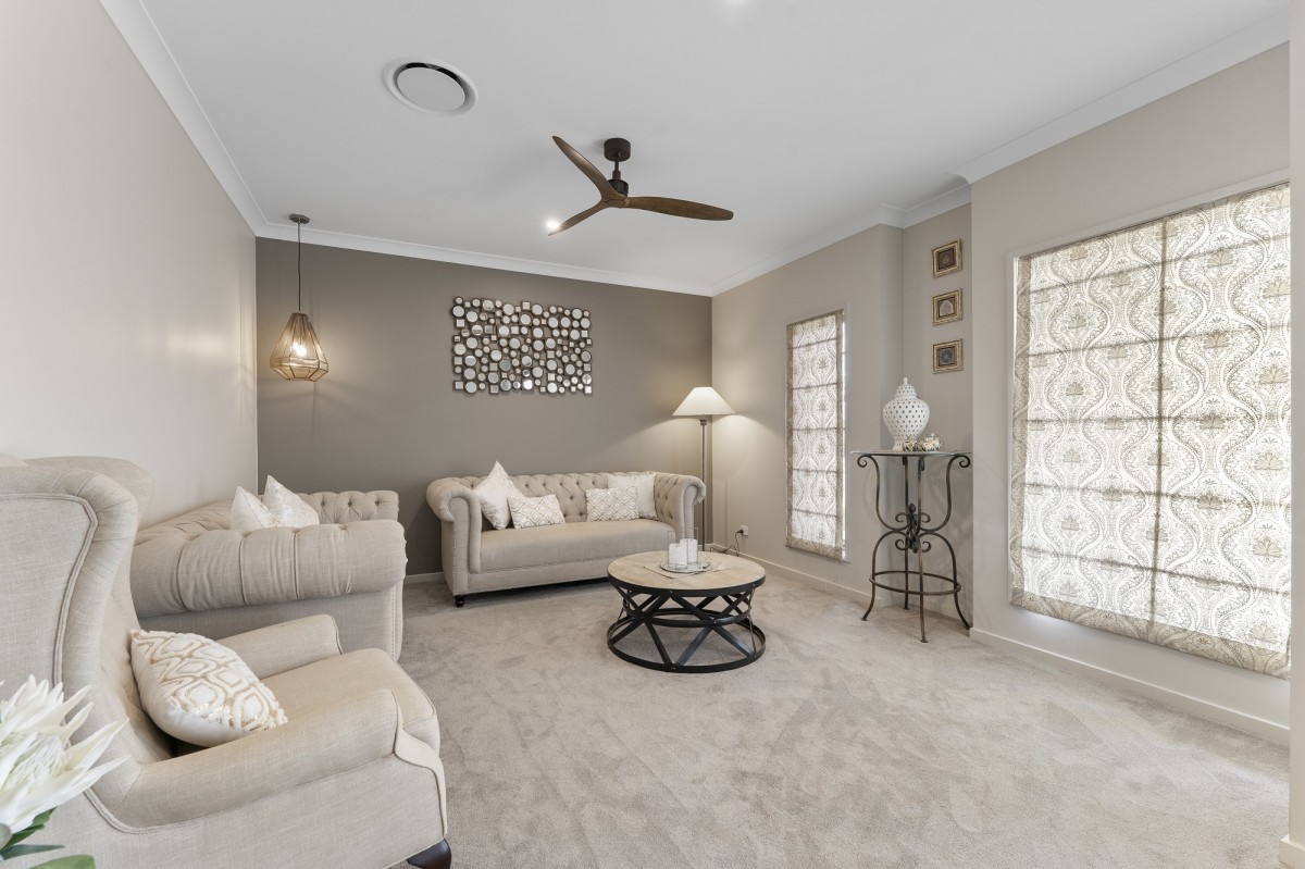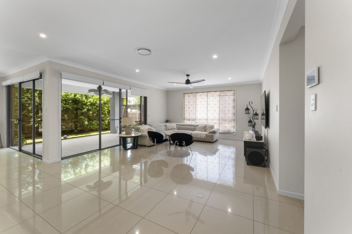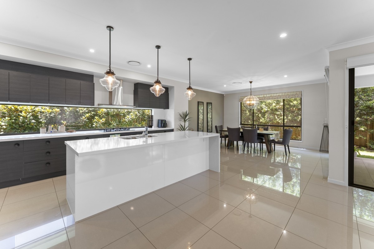 The gourmet kitchen is the showpiece - an entertainer's dream with Caesarstone island, high-end appliances, and abundant storage. The open-plan layout flows to the alfresco area.