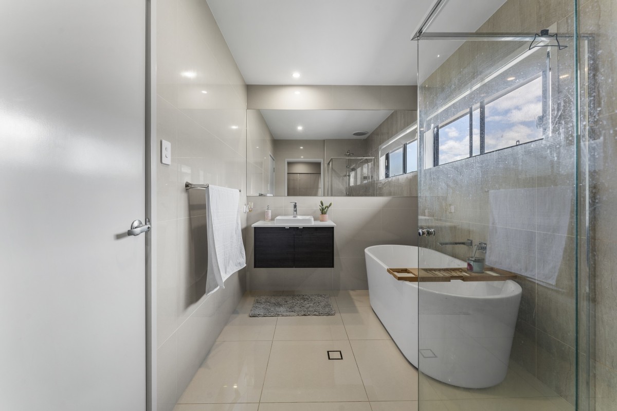 Upstairs, the master room has a private ensuite with floor-to-ceiling tiles, premium fittings, and spa-like elegance. Additional bedrooms are generously proportioned, each with built-in storage.
