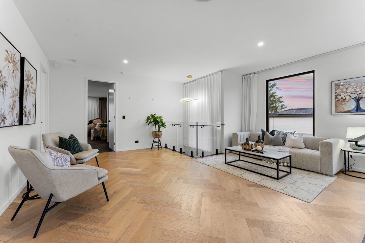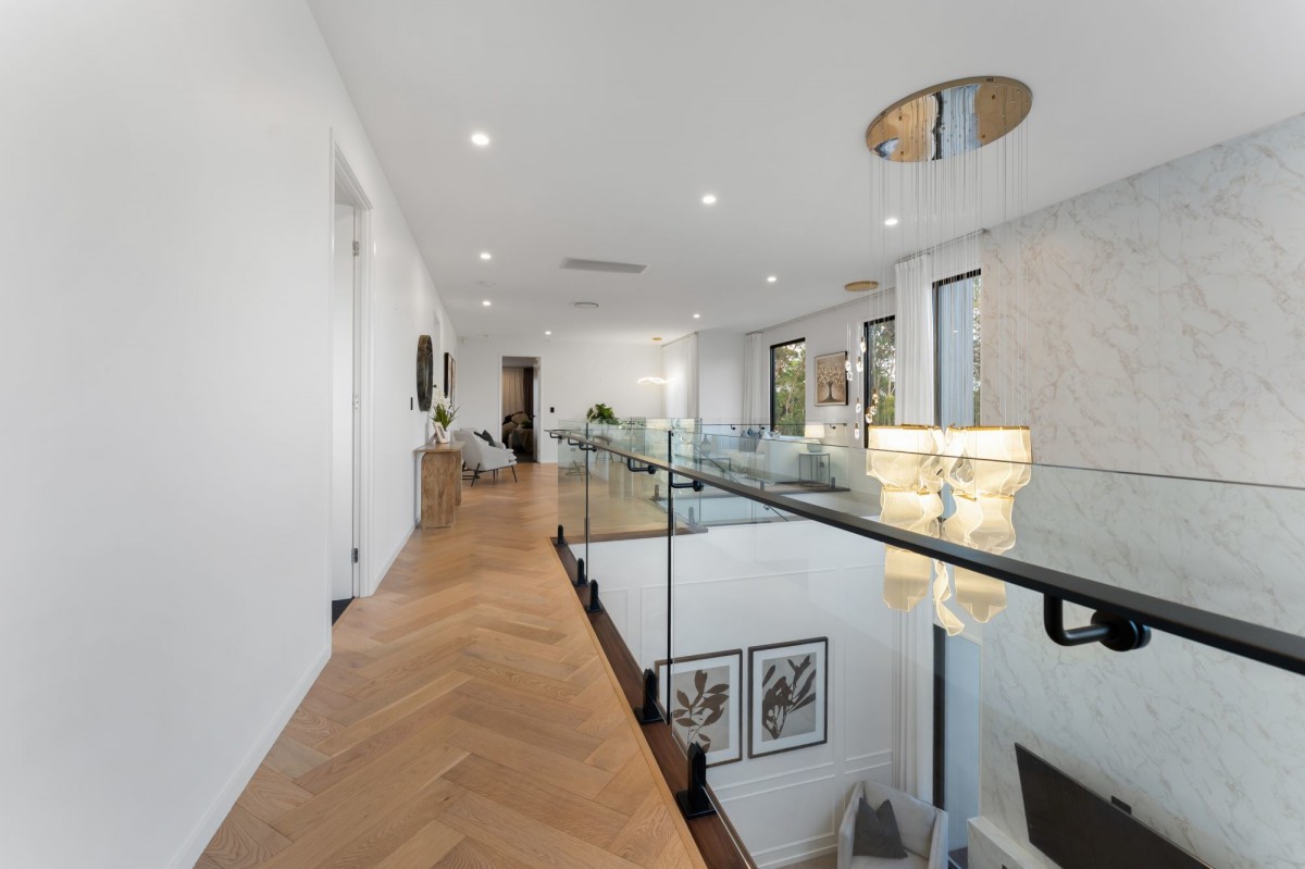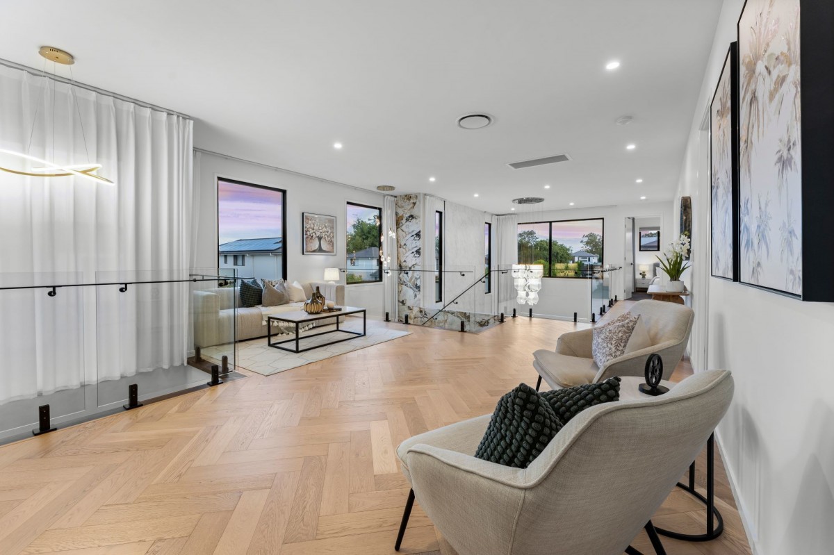 Presenting a luxurious haven in the esteemed neighborhood of Rochedale. This exquisite residence boasts five bedrooms, four bathrooms, and an additional powder room downstairs for added convenience. Upon entering, you'll be greeted by the elegance of porcelain tiles gracing the entirety of the ground floor, while upstairs, the main areas exude warmth with timber flooring.