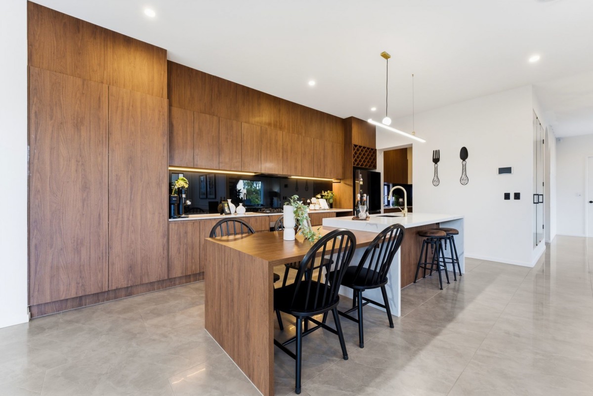 Step into culinary perfection with this kitchen masterpiece, featuring a sprawling 60mm stone island bench that serves as the focal point of the space. Crafted with meticulous attention to detail, the high-quality cabinets exude sophistication while providing ample storage for all your culinary essentials.