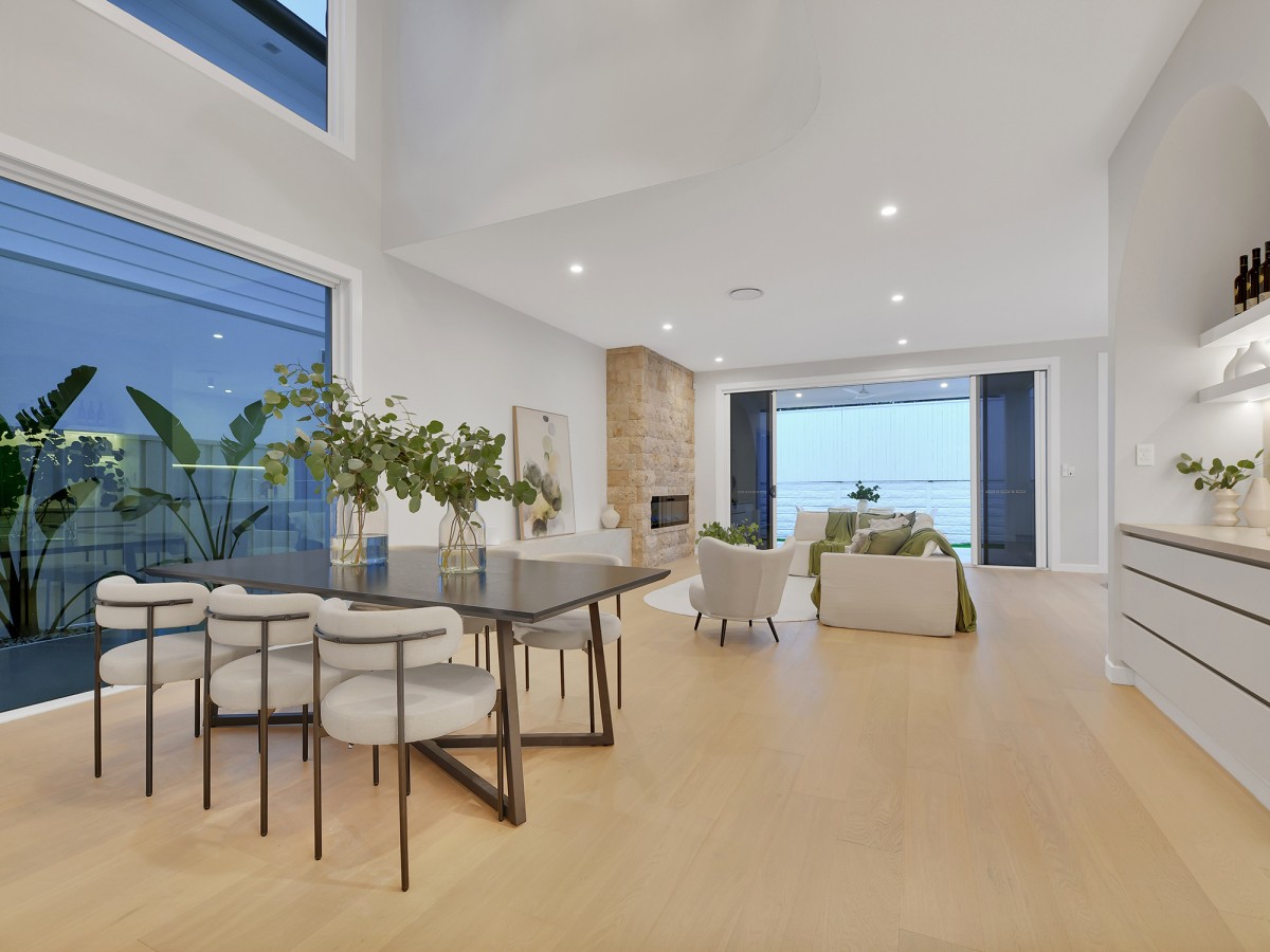 As you step inside, you are immediately welcomed by a sense of space, light, and refined detail. Soaring ceilings and expansive glazing enhance the natural light throughout, while the seamless flow of premium engineered timber flooring adds warmth and cohesion across the home. The layout has been intelligently designed to cater to both everyday living and grand-scale entertaining, offering multiple living zones that provide flexibility for growing families.