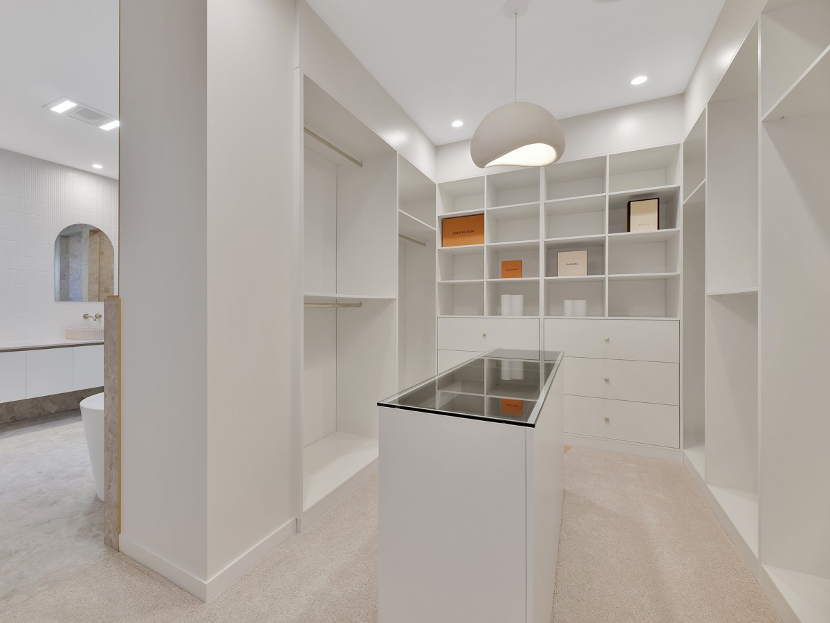 Upstairs, the accommodation offers a sense of privacy and retreat, highlighted by an exceptional master suite that truly elevates the home. Generously proportioned, the master bedroom provides a serene sanctuary with ample space for both relaxation and functionality. Soft natural light, elegant finishes, and a calming neutral palette create a luxurious hotel-like atmosphere. The expansive walk-in robe has been thoughtfully designed to offer abundant storage and organisation, easily accommodating an extensive wardrobe while maintaining a clean, streamlined aesthetic.